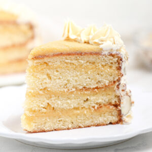 Store any leftover cake in an airtight container in the fridge for up to five days. Let slices come to room temperature before serving for the best texture.