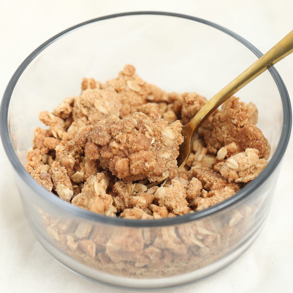What I love about this topping is how easy it is to use in different ways. You can toss it straight onto a fruit pie before baking, or crisp it on its own and keep it handy to sprinkle over just about anything sweet. It adds the perfect crispy and buttery contrast, with a bit of chew from the oats. The toasted flour and oats bring out a cozy, nutty flavor that just works no matter what you’re pairing it with!