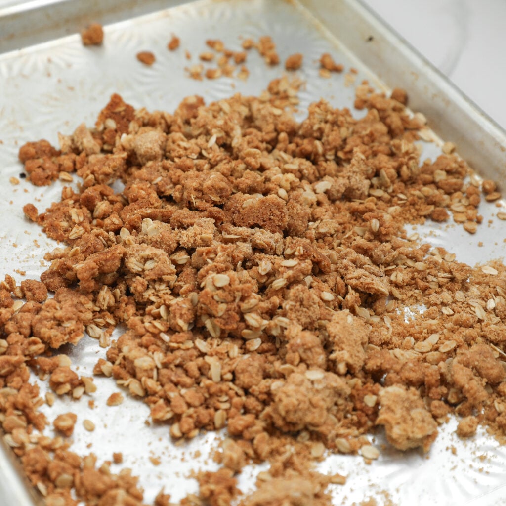 If the topping softens while stored, just spread it out on a baking sheet and pop it into a 350°F oven for 5 to 10 minutes. It’ll crisp right back up and taste freshly made.