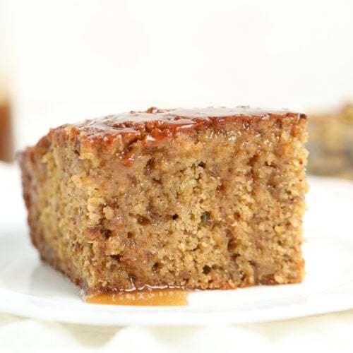 This cake is everything you want in a fall dessert: honey, cinnamon, brown sugar, warm spices, and a dense pudding-style crumb that stays soft, even after chilling in the fridge. It serves beautifully at room temperature or slightly warm with ice cream, yogurt, or an extra drizzle of honey syrup.