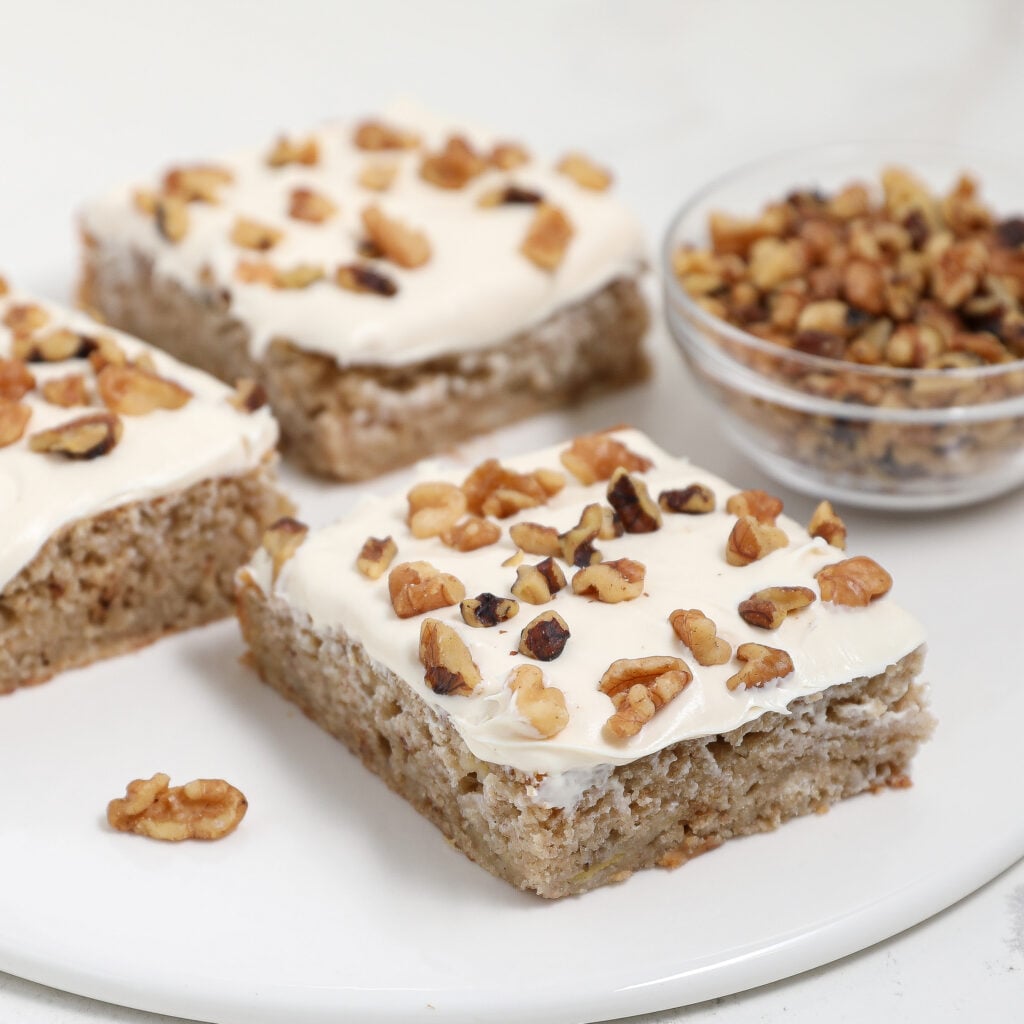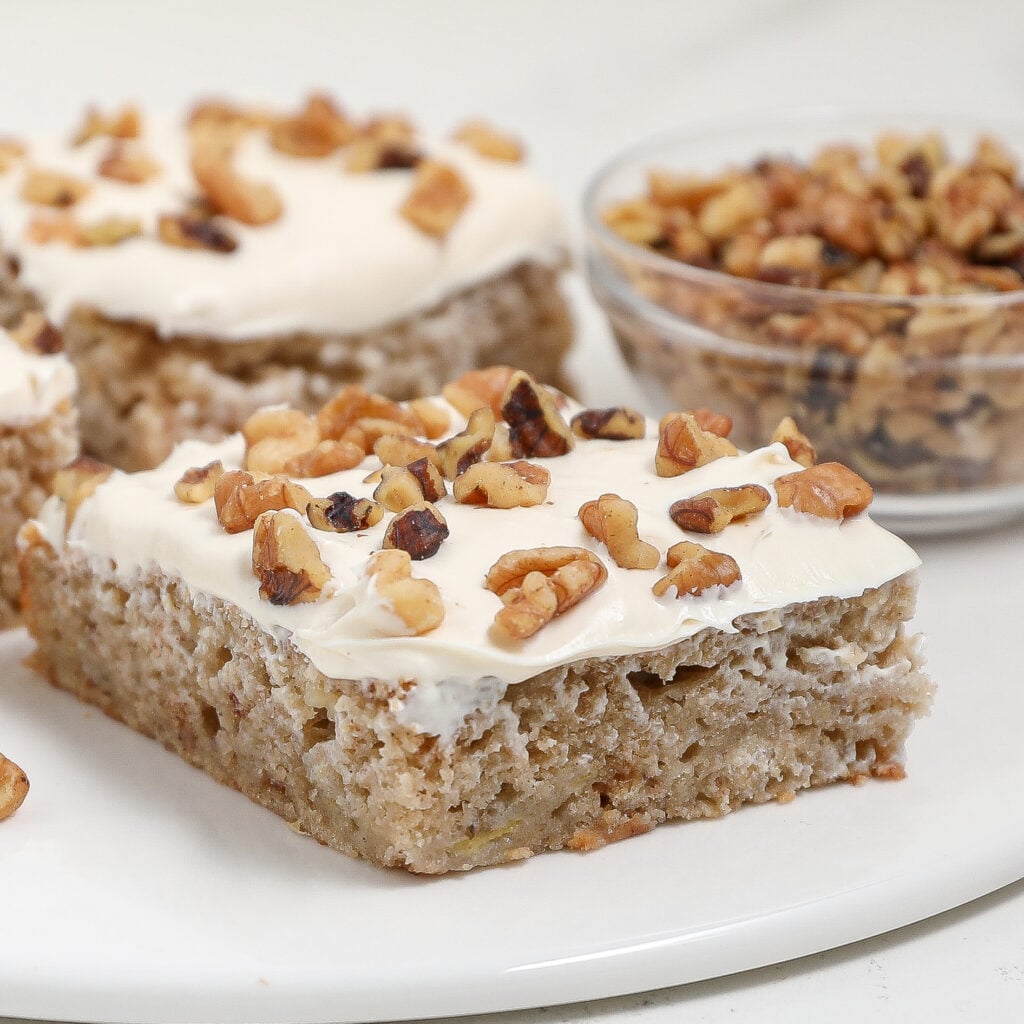 - Frost and finish: Cool completely, then spread with cream cheese frosting. Sprinkle with chopped walnuts if desired. Slice into squares and enjoy.