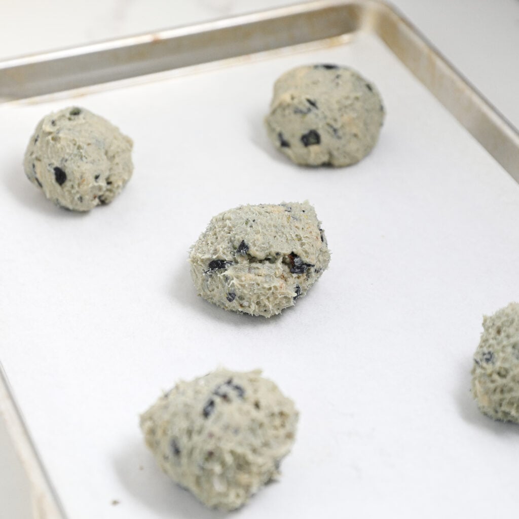 - Scoop 1 tablespoon portions onto the sheet and freeze for 1 hour.