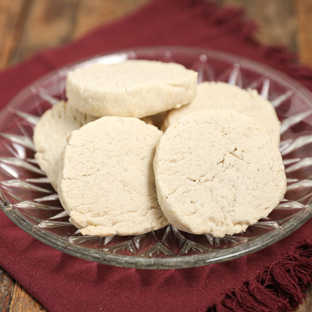 For best results, slice the dough into even rounds. This helps the cookies bake evenly and gives them that perfect shortbread crispness on the edges with a soft center.