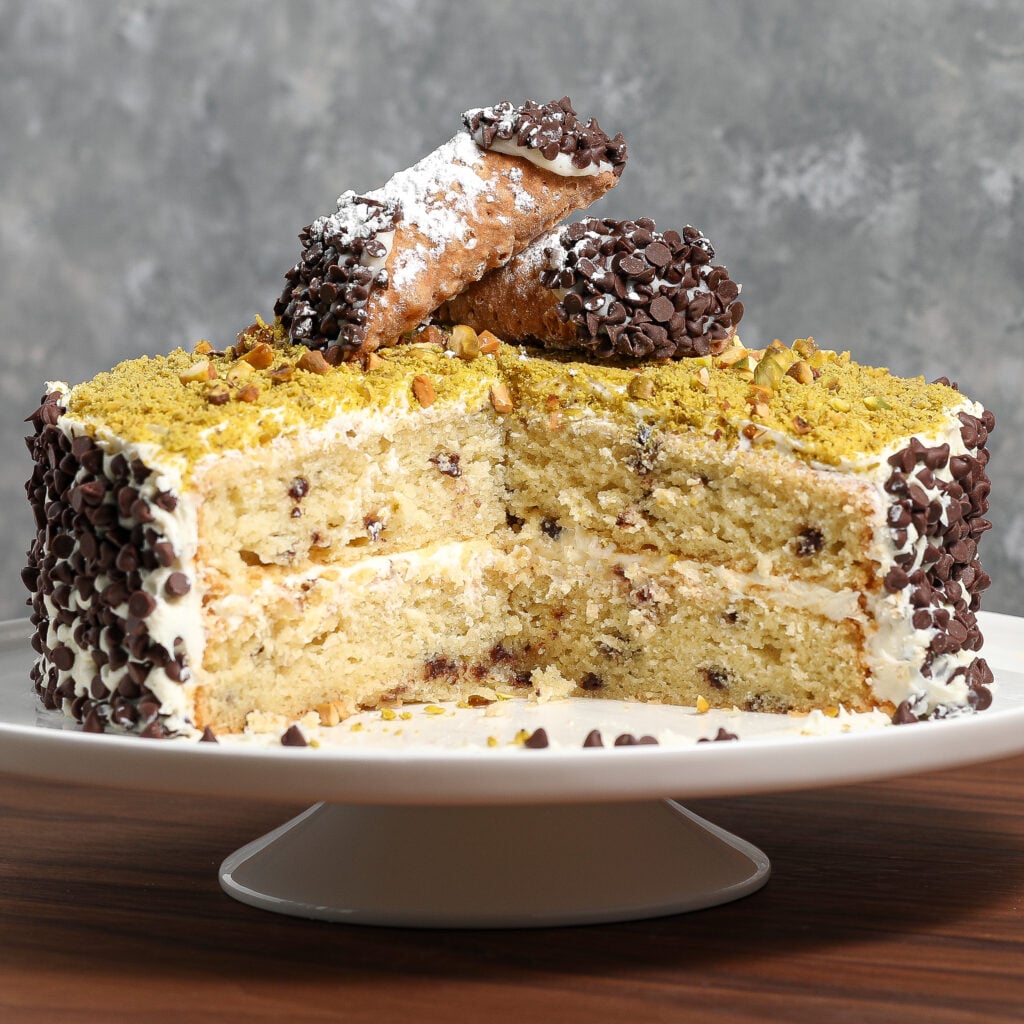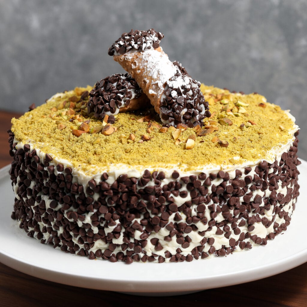 - Cannoli-Inspired Flavor: If you love classic cannolis, you’ll go crazy for the ricotta filling and mini chocolate chips throughout the cake.