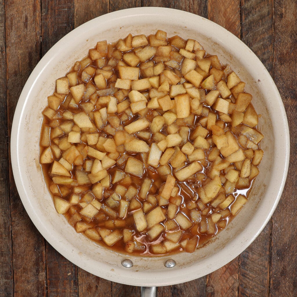 - Make the caramel apple mixture: Cook the apples with butter and spices until they soften, then add juice and sugar to create a caramel-like consistency.