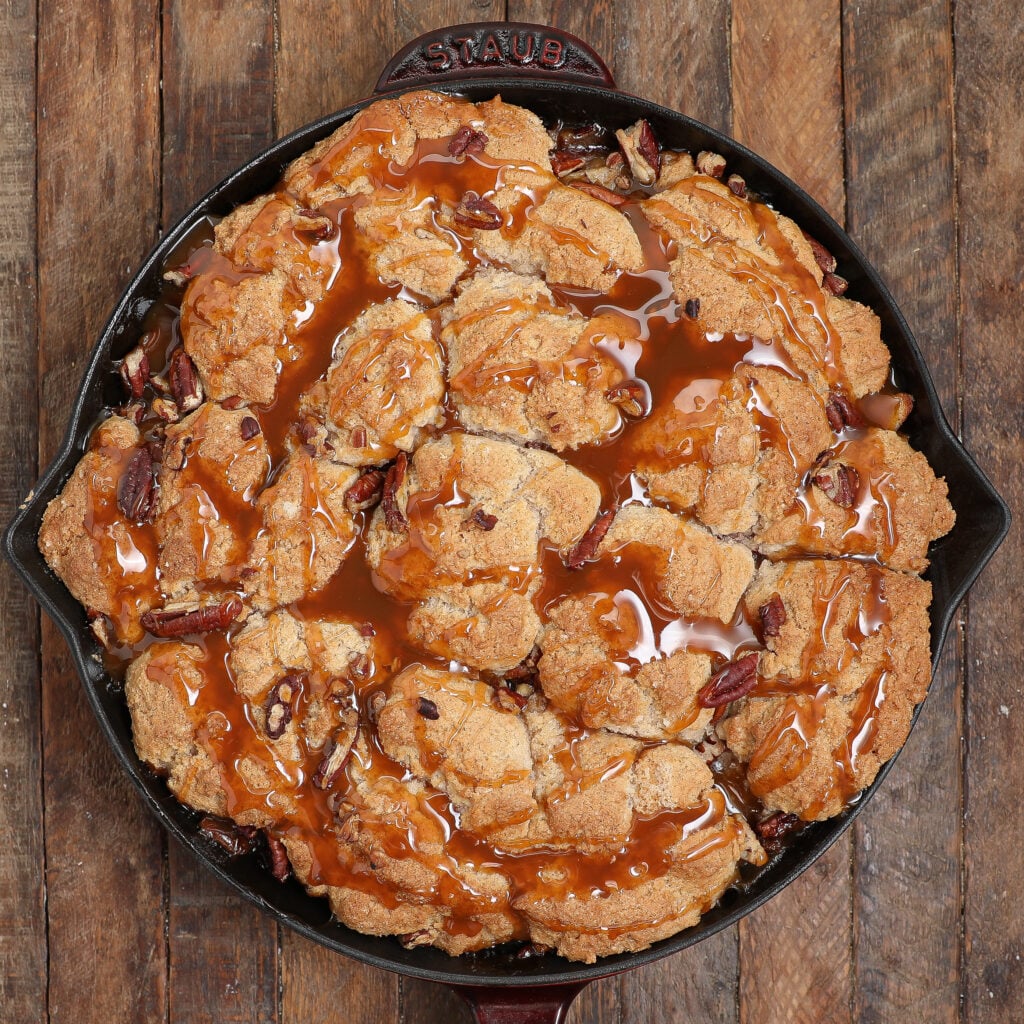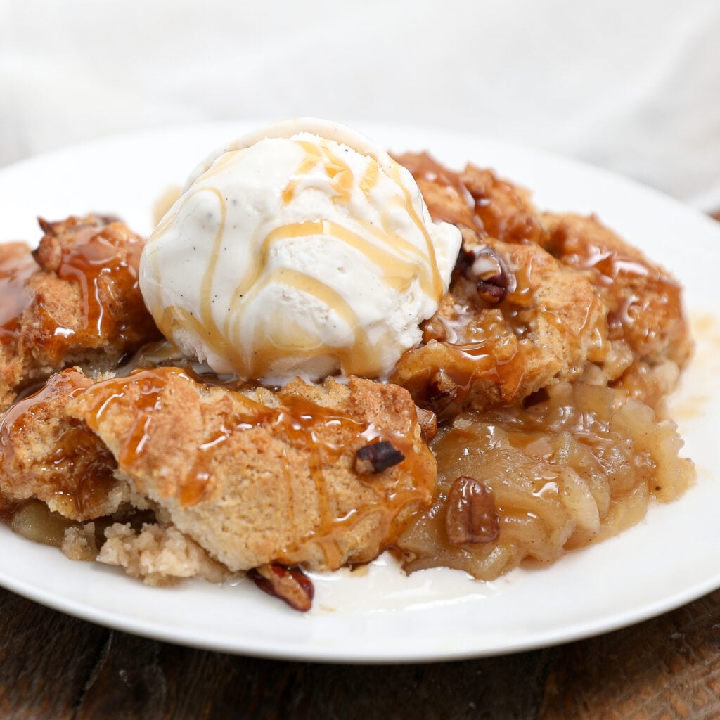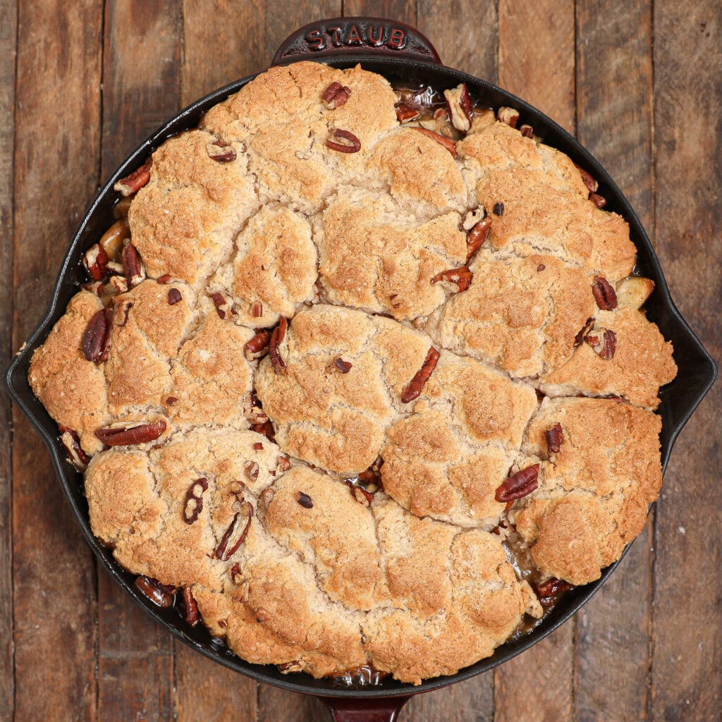 Holy cow. This cobbler was OUTSTANDING. I told my husband I was thinking of making something sweet and he sent me the video/reel from IG. I grew up in the Northeast where we ate more apple crisp (with oatmeal) than cobbler. My husband grew up in the deep south and his experience is just opposite of mine. I still largely prefer a crisp (nostalgia maybe?), but we will 100% make this again. I was a bit more heavy handed on the cinnamon. I grated frozen Kerrygold for the butter and put the pecans on the apple mixture before adding the cobbler crust (dough?) on top. We served warm with vanilla ice cream and it was divine. It was so divine I told the husband I could eat a second bowl, but refrained myself. haha!