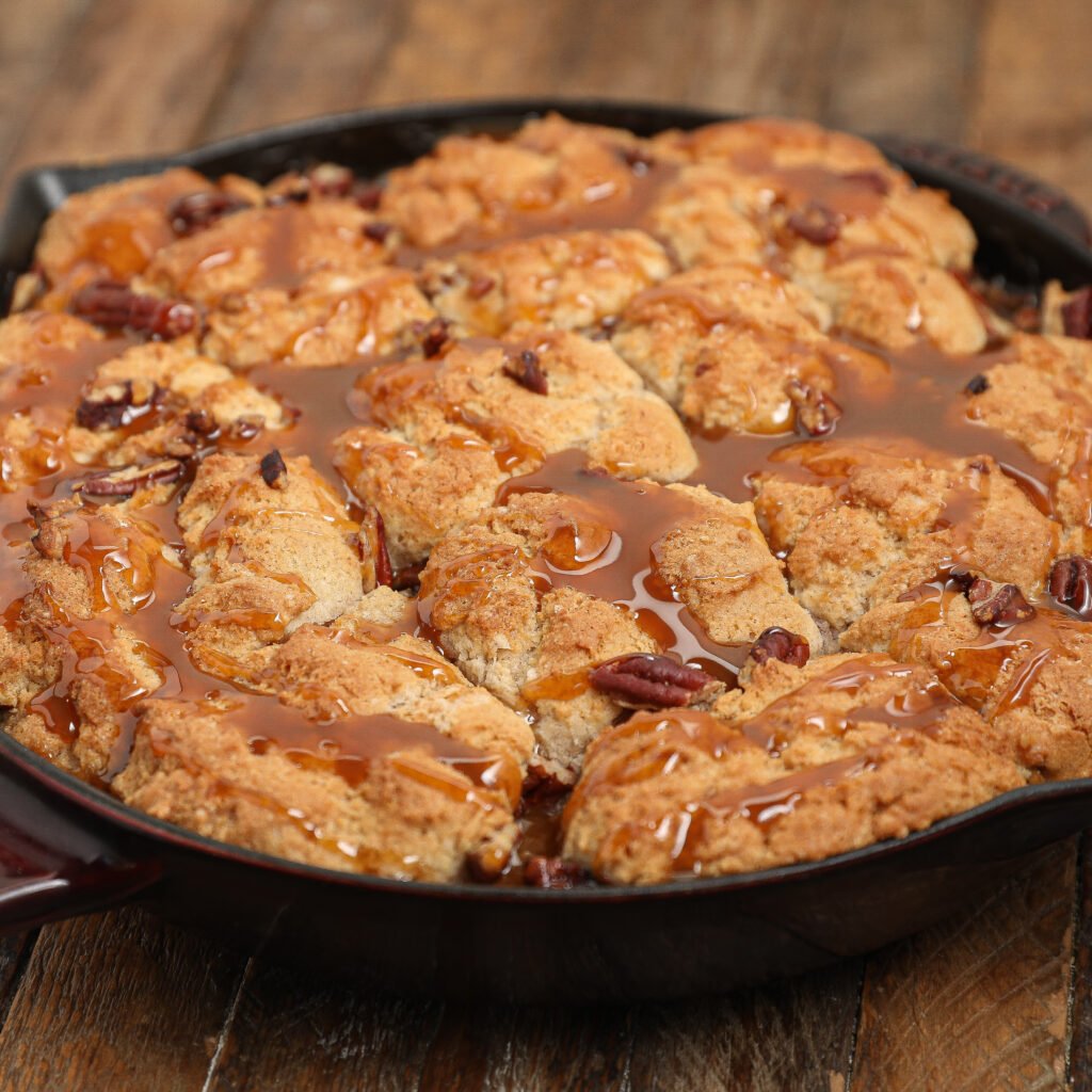 The Caramel Apple Cobbler was absolutely delicious. I made a double recipe for Thanksgiving and everyone devoured it. I served this with ice cream. There weren’t any leftovers. Very easy to prepare. I will make this again.