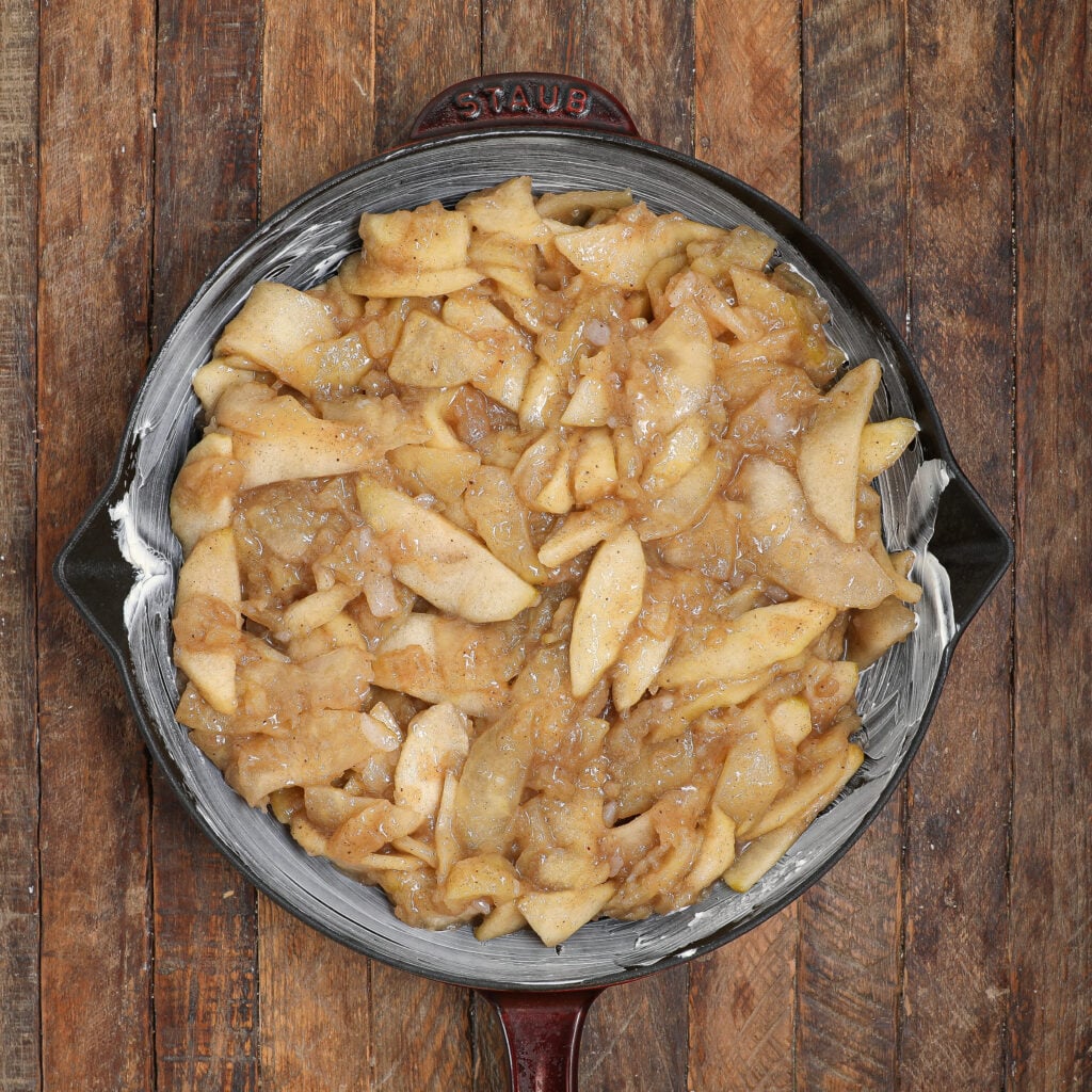 Excellent Recipe . The caramel sauce on top is a must !!! Highly recommend this recipe ⭐️⭐️⭐️⭐️⭐️ I actually doubled it and out it into my deep dish cake pan it turned out great I did need to cook it about 15 mins longer . I use as my frozen apples and it turned out great ..