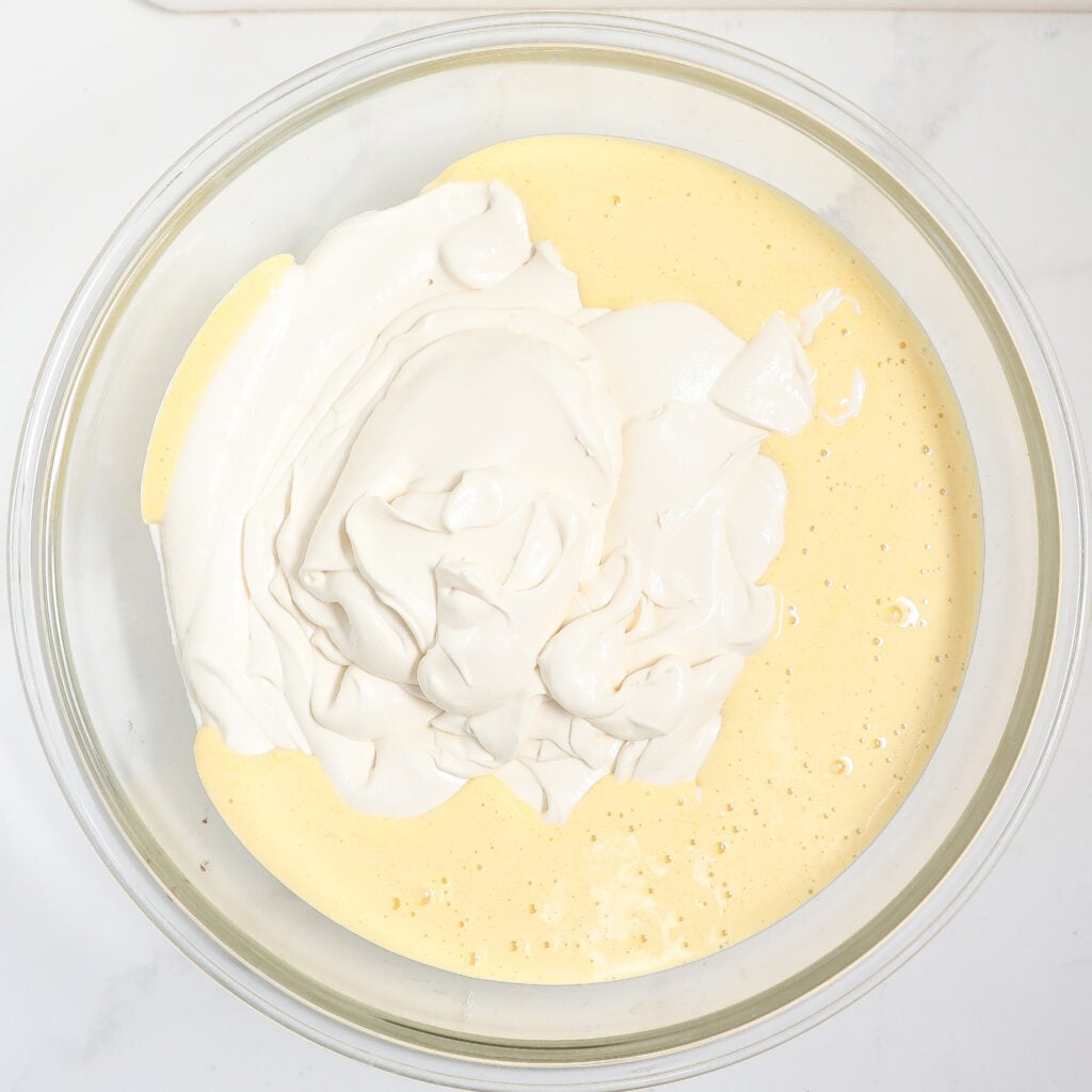 In another bowl, whip the heavy cream until stiff peaks form, then fold into the mascarpone.