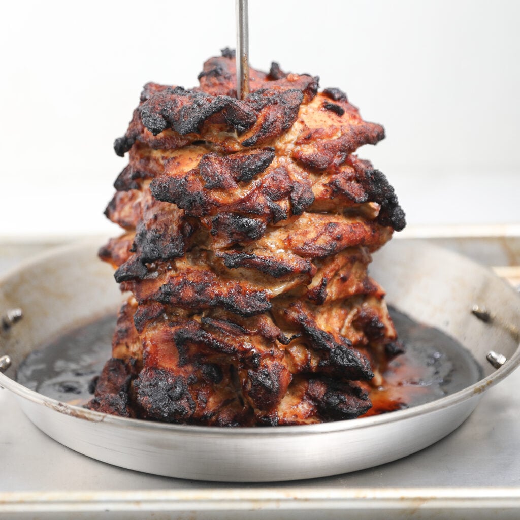 - Vertical skewer pan (or a roasting pan with a rack)