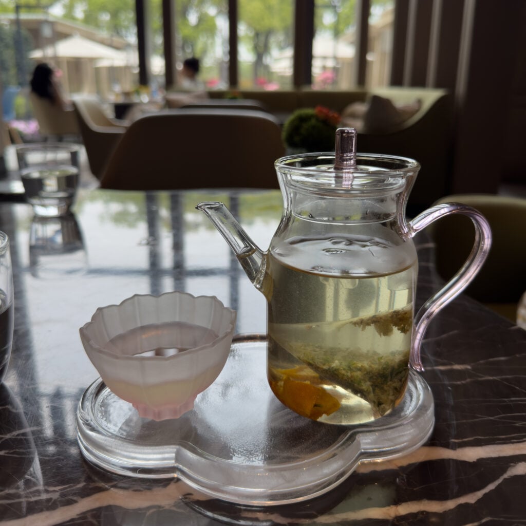 Park Hyatt Suzhou This hotel was stunning, with a 5-star interior all the way! We were on the top floor with a view of the water, and everything, from the bed to the bathroom, felt luxurious. The highlight was the breakfast buffet. They had buttery French pastries, fresh ramen bowls, dumplings, eggs cooked to order, and juices of every kind. We also had great lunches and dinners at the hotel restaurant and tea room.
