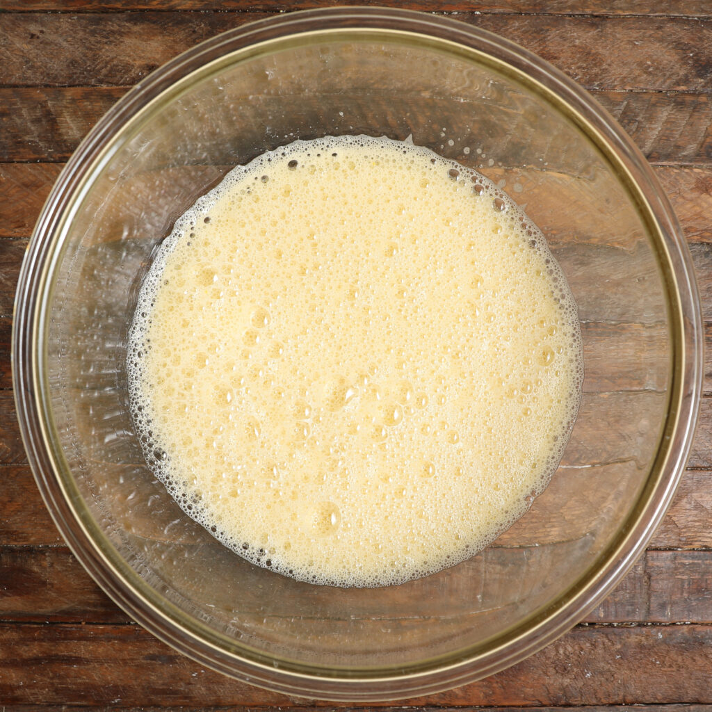 - The center should have a small divot and be slightly jiggly. Remove and cool for 3 mins before flipping onto a plate.