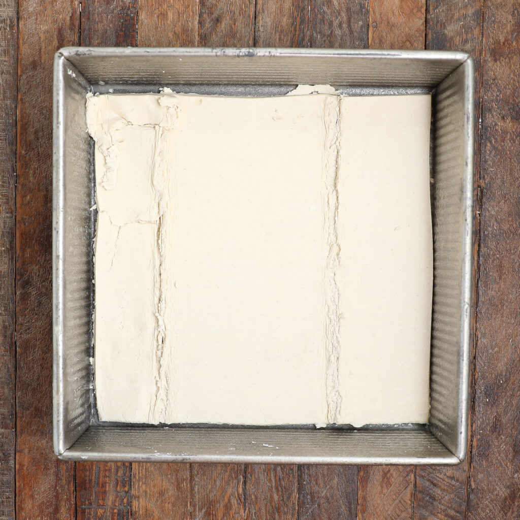 - Prepare the Oven and Pan: Preheat the oven to 325°F. Prepare a 9” x 9” baking pan by cutting the puff pastry sheets to fit.
