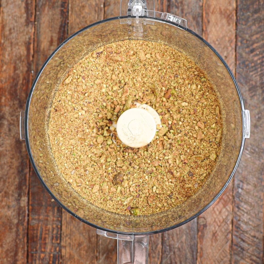 - Blend the pistachios, cinnamon, and nutmeg together until finely ground.