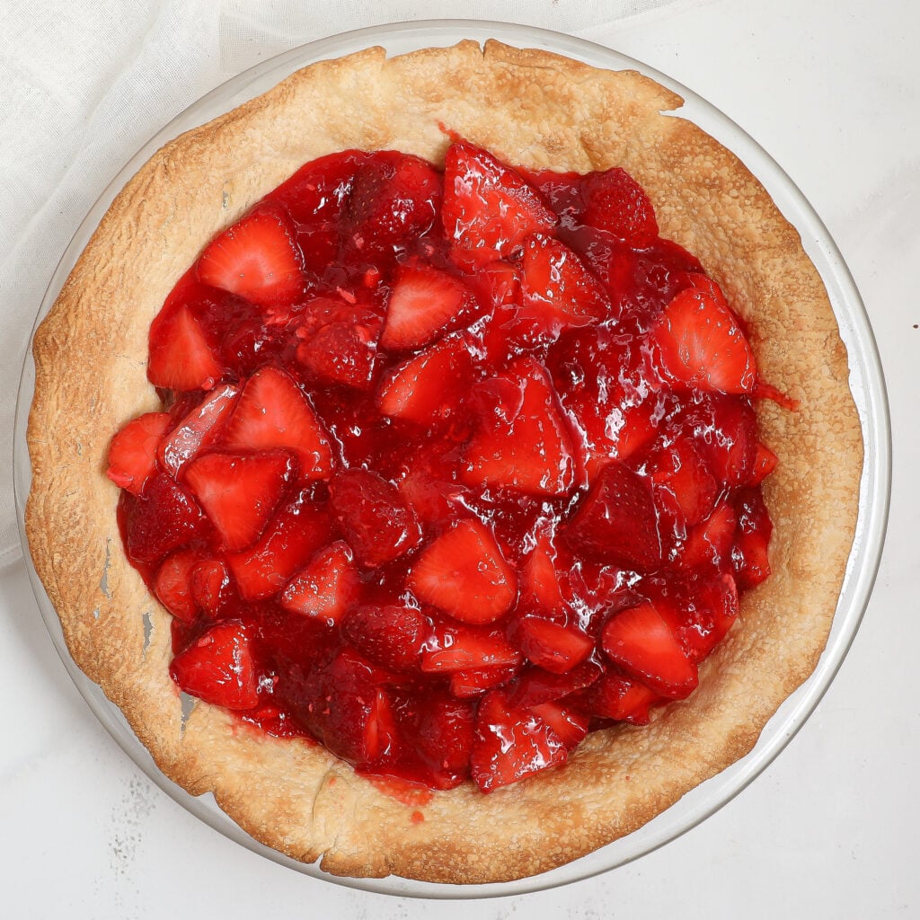 Store leftover strawberry pie in the refrigerator, tightly covered, for up to three days. This helps maintain the pie’s texture and keeps it tasting fresh.