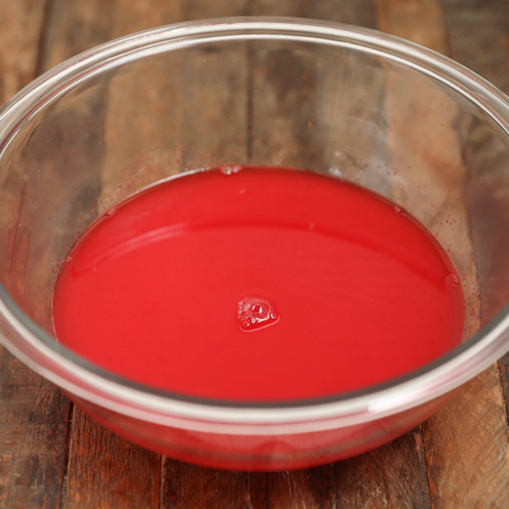 - In a separate bowl, mix ½ cup of water with the cornstarch until dissolved, then stir it into the jello mixture.