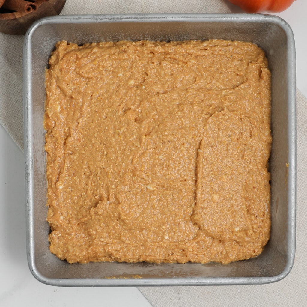 - Preheat oven to 375°F. Grease or line an 8×8-inch cake pan.