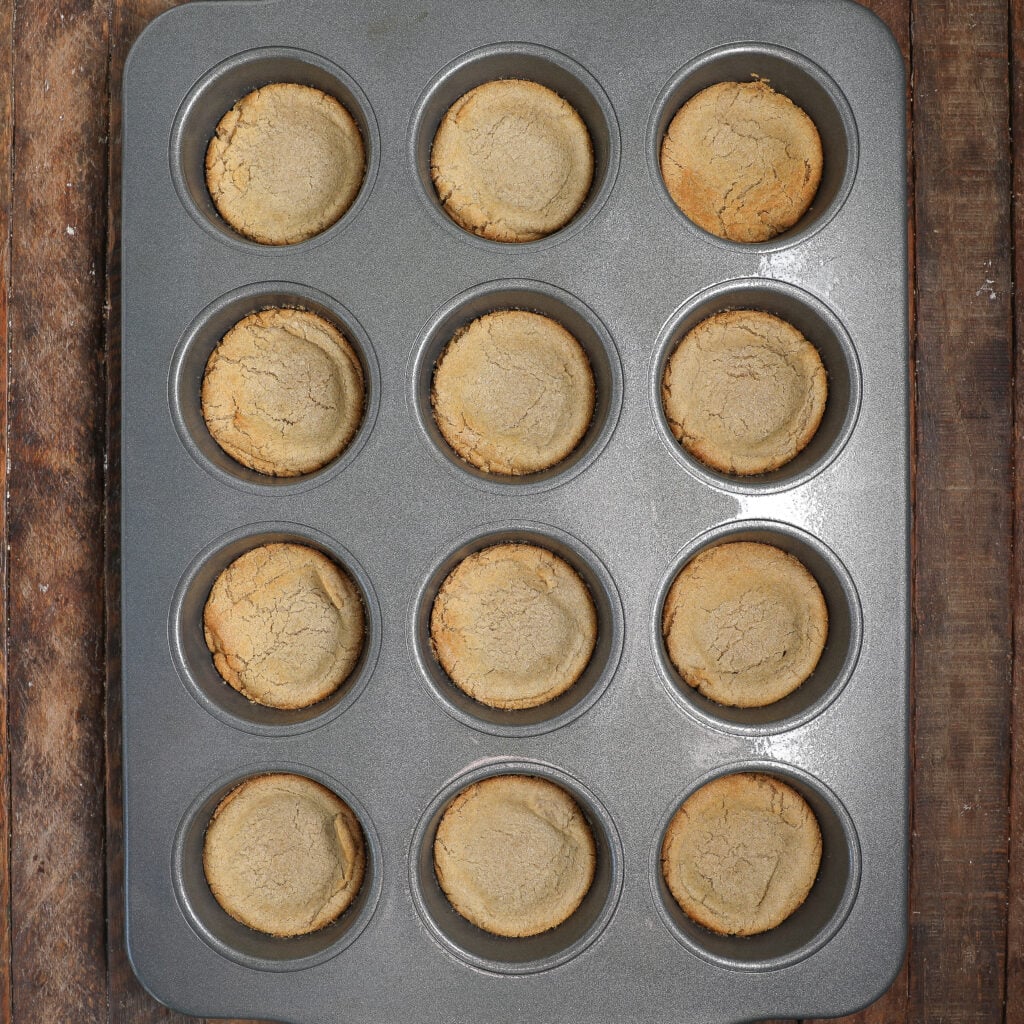 - Once baked, take the muffin tins out of the oven and let the cookie dough cups cool completely on a cooling rack. This is important – don’t skip this step!