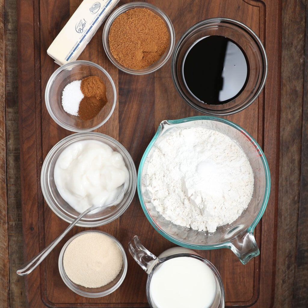- In a mixing bowl, cream together the butter, brown sugar, and granulated sugar. Mix in eggs one at a time, then add vanilla, molasses, yogurt, date paste, and buttermilk.
