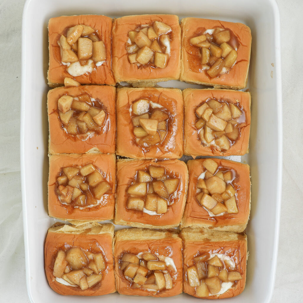 - Partially fill the slider buns with the cream cheese mixture. Top with the apple pie filling.
