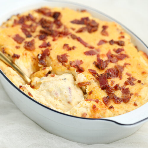 - Can I prepare this casserole ahead of time and bake it later? Yes, you can assemble the casserole ahead of time and refrigerate it until you’re ready to bake. Just be sure to add the cheese and chopped bacon topping just before baking for the best texture.