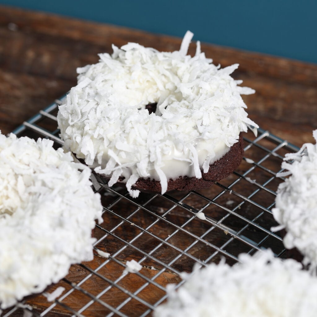 Once they set, you get a soft chocolate donut with a sweet coconut top that adds just the right texture. They’re dessert-y but still totally coffee-friendly.