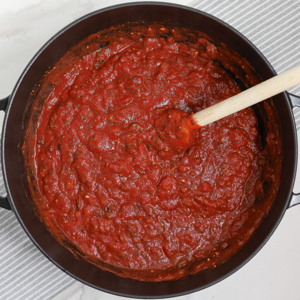 - Partially cover the pot and let the sauce simmer for 1 hour, stirring occasionally.