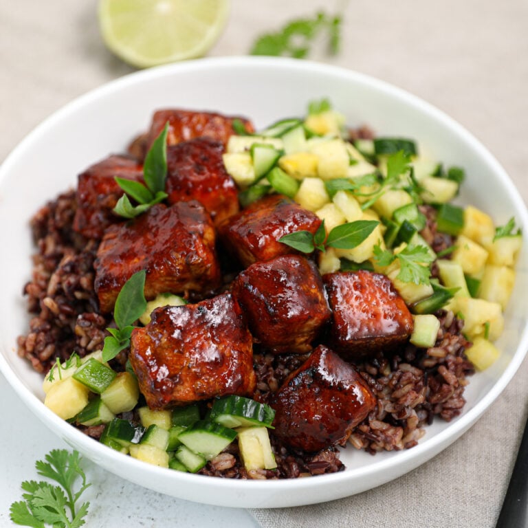 Korean BBQ Crispy Salmon Bowl With Pineapple Salsa