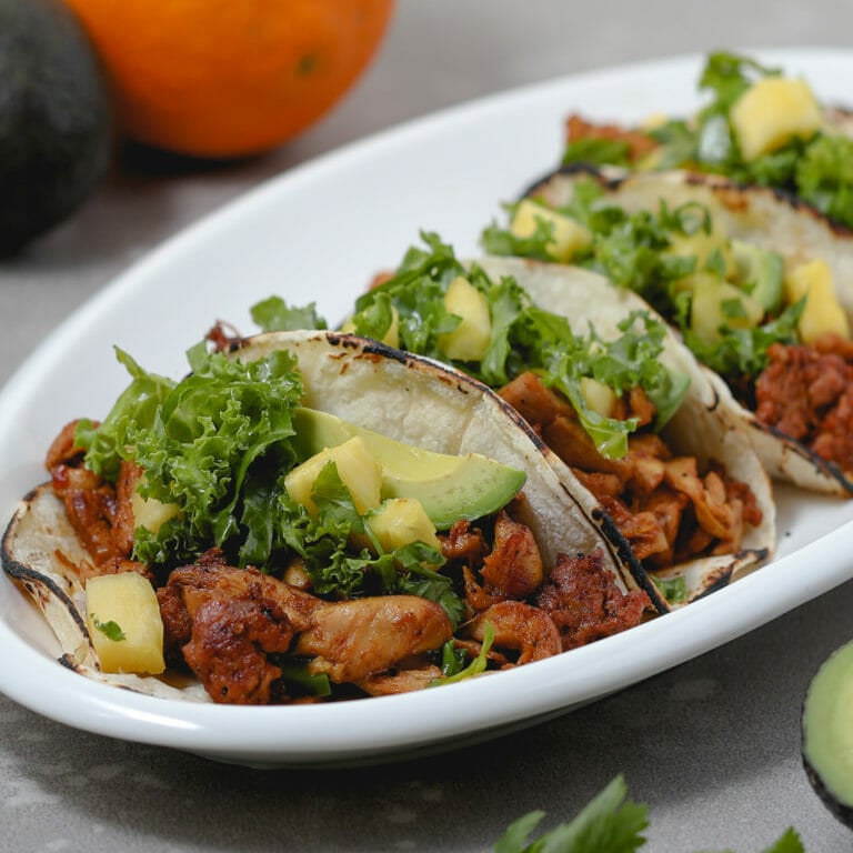 Chicken and Chorizo Tacos with Tropical Pineapple Slaw