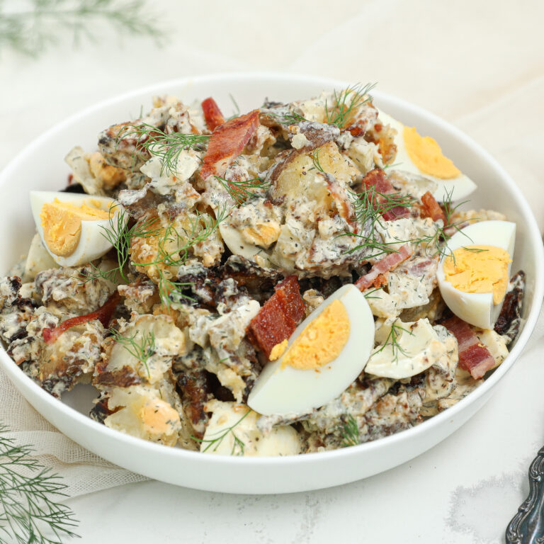 Crispy Smashed Potato Salad with Dill Pickle