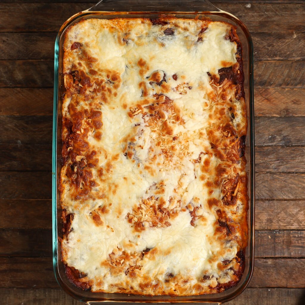 - Top with mozzarella, remaining parmesan, and bake for 45 minutes.
