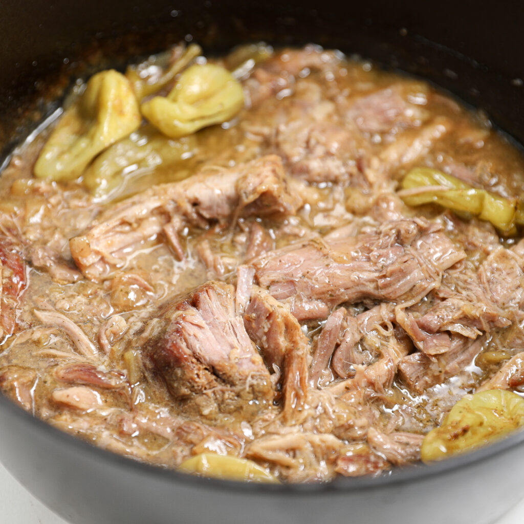 - 6 pepperoncini peppers plus 1/3 cup pepper juice