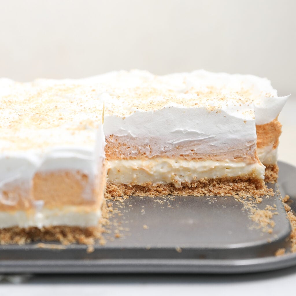 - Add the final topping: Spread more whipped topping over the pumpkin layer and refrigerate to let it set.