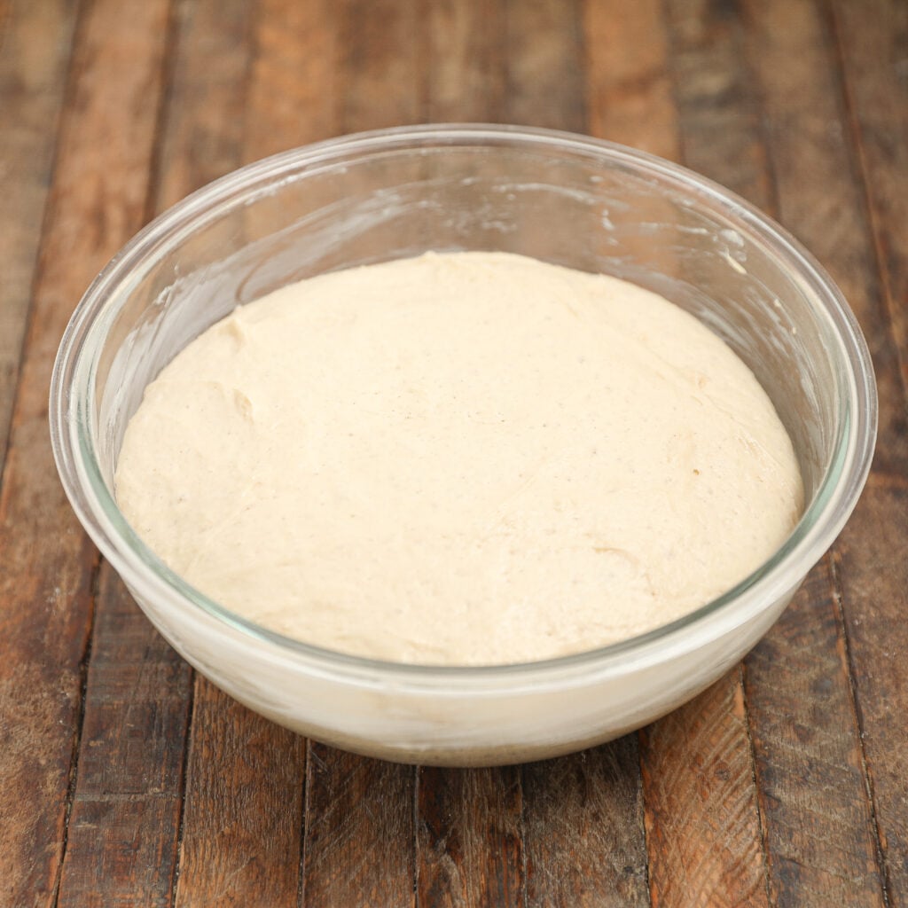 Let it rise overnight at room temperature (8–12 hours) until doubled in size.
