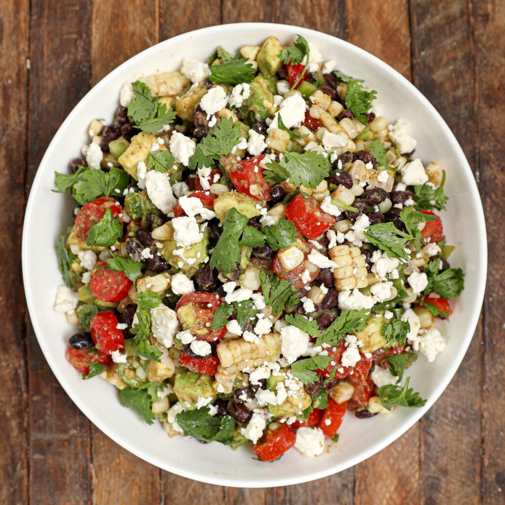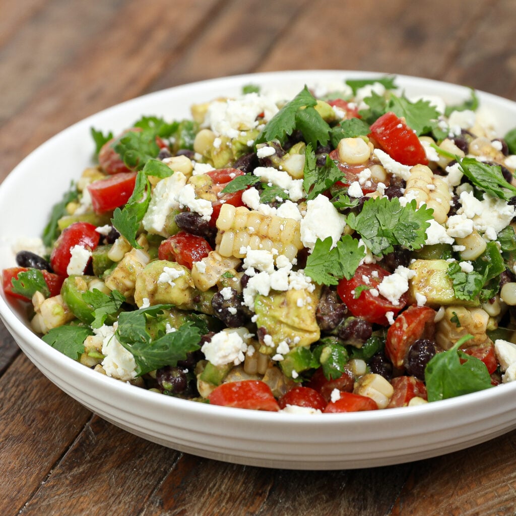 This salad is versatile and can be served with a variety of sides. It pairs well with a grilled protein, tortilla chips, or a side of rice. For a lighter option, serve it with a side salad or some crusty bread.