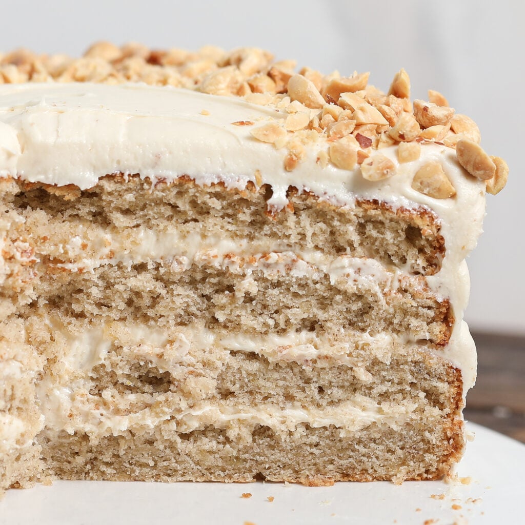 Spiced Banana Cake with Honey Peanut Butter Cream Cheese Frosting
