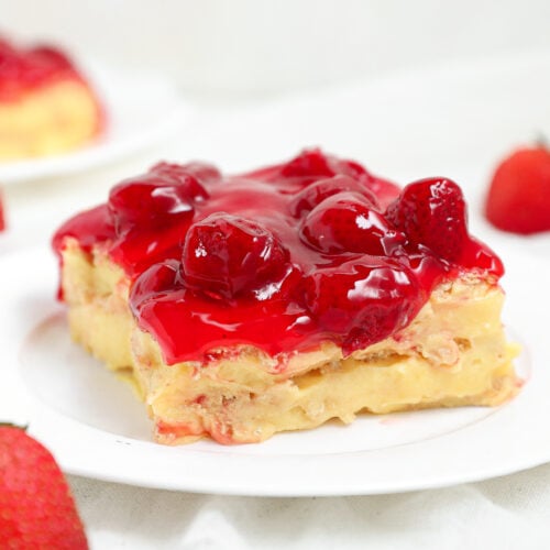 This dessert recipe is a perfect combo of graham crackers, creamy vanilla pudding, and sweet strawberry filling. It’s perfect for anyone who craves a sugary treat without the fuss of spending hours in the kitchen.