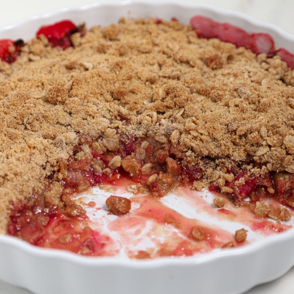 The best way to tell when your Strawberry Rhubarb Crisp is done is by looking at it. The topping should be a beautiful golden brown color, and the edges of the filling should be bubbling slightly. You can also insert a toothpick into the center of the crisp. If it comes out clean, your crisp is good to go!