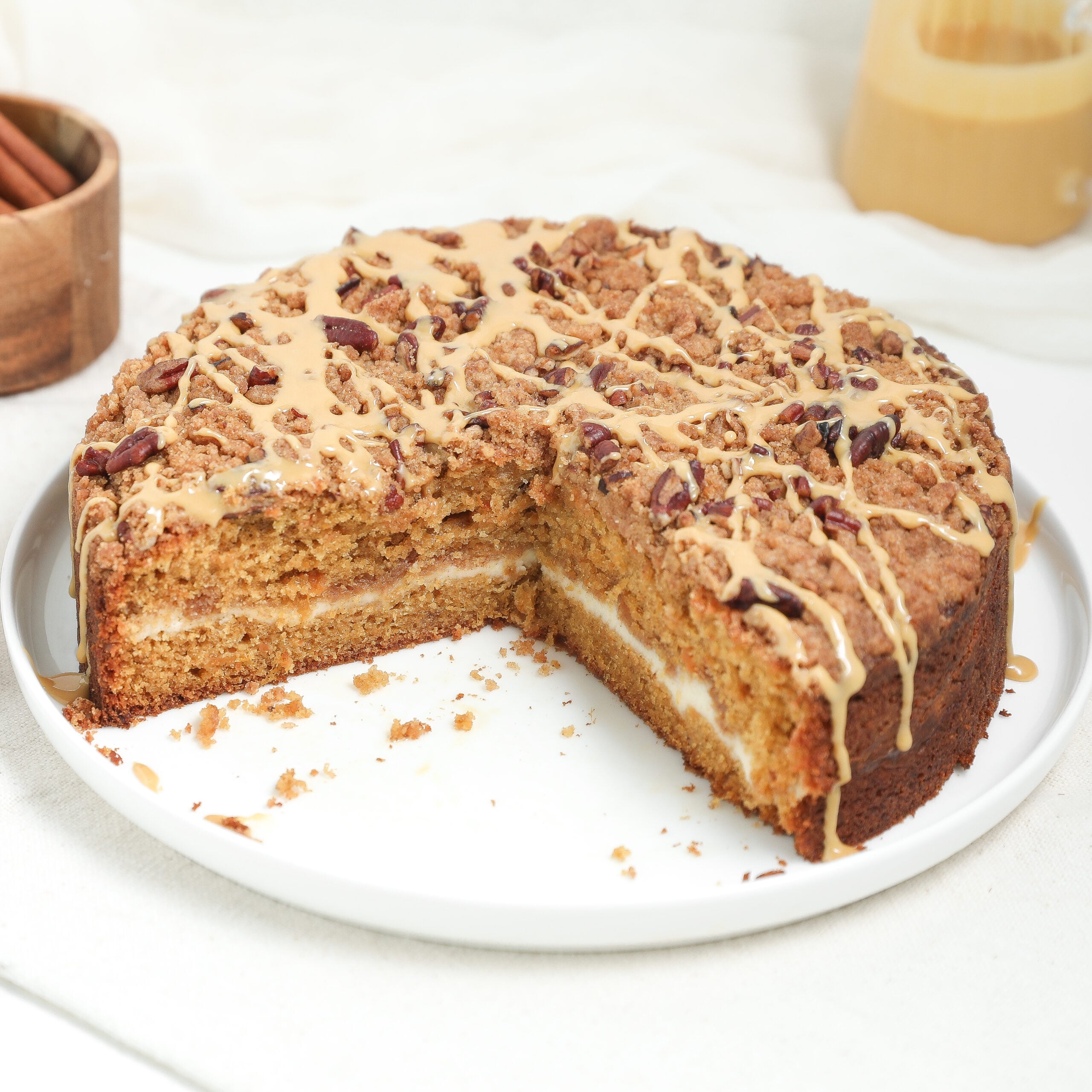 - Layers of flavor: Sweet potato cake, cream cheese filling, crunchy streusel, and a molasses glaze all in one dessert.