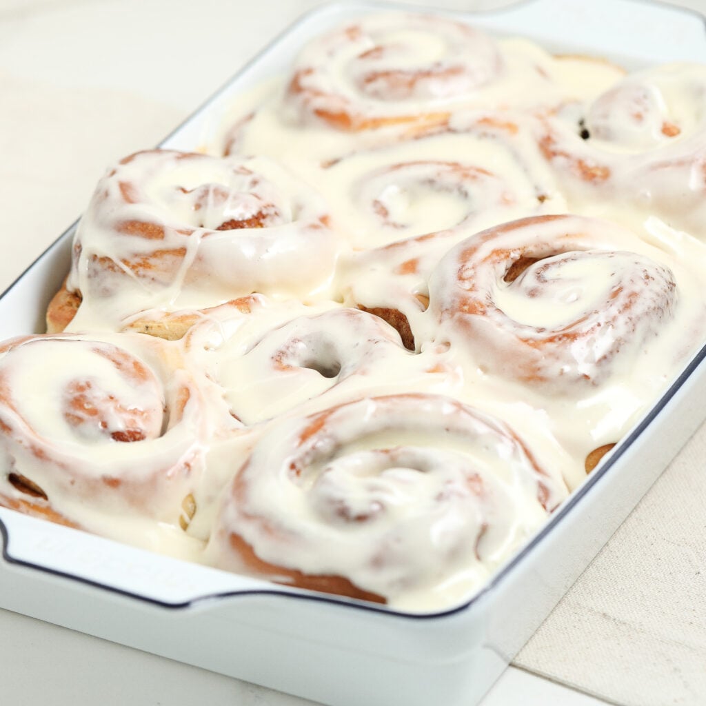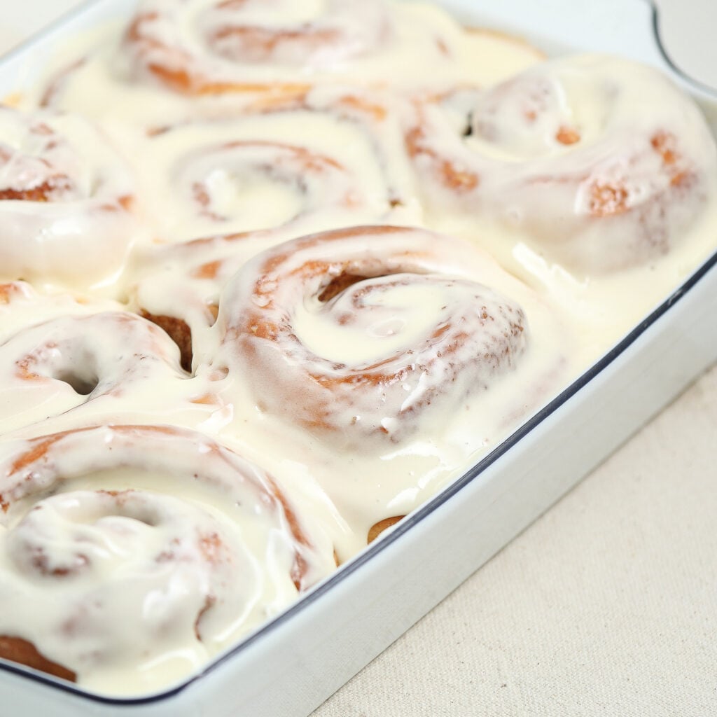 - Make them extra gooey: Pour warm heavy cream over the rolls before baking, Cinnabon-style.