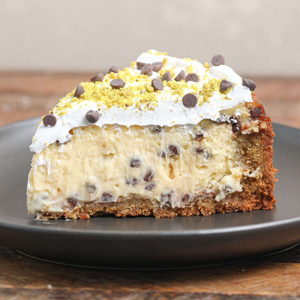 This Dairy and Gluten-Free Cannoli Cheesecake is a game-changer for anyone who misses cannoli but can’t have dairy or gluten! It’s basically a cannoli in cheesecake form, which is amazing. The filling is made with cream cheese and sour cream, making it super creamy and a bit tangy. The crust is crunchy and gluten-free, and the whole thing is topped with mini chocolate chips and pistachio flour for a nutty, salty finish. Seriously delicious!