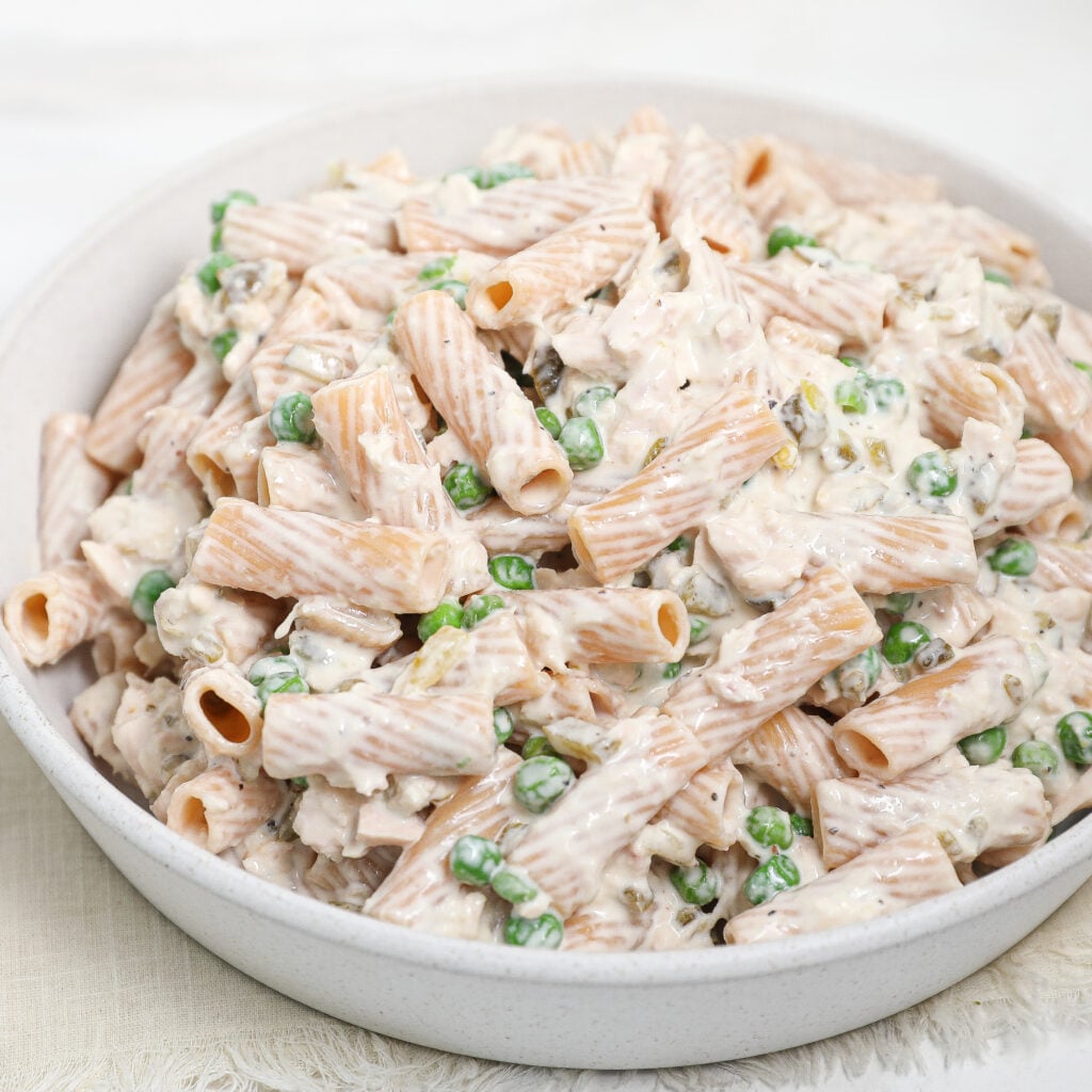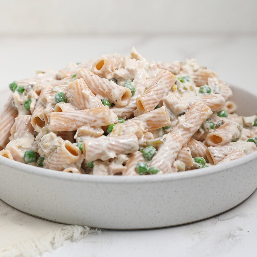 Store your tuna pasta salad in an airtight container in the fridge for up to 3-4 days. If you’re meal prepping or making it ahead, it’s a great dish to enjoy for a couple of days as the flavors develop even more. Just be sure to give it a good stir before serving if any of the dressing has settled.