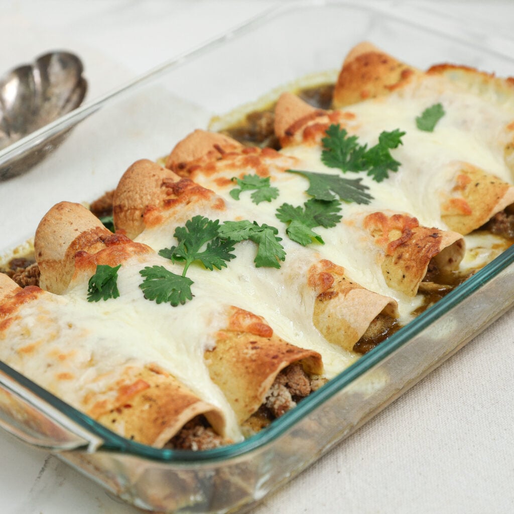 Cover the baking dish with foil or transfer enchiladas to an airtight container. Store in the fridge up to 3 days. Reheat in the oven at 350°F until warmed through.
